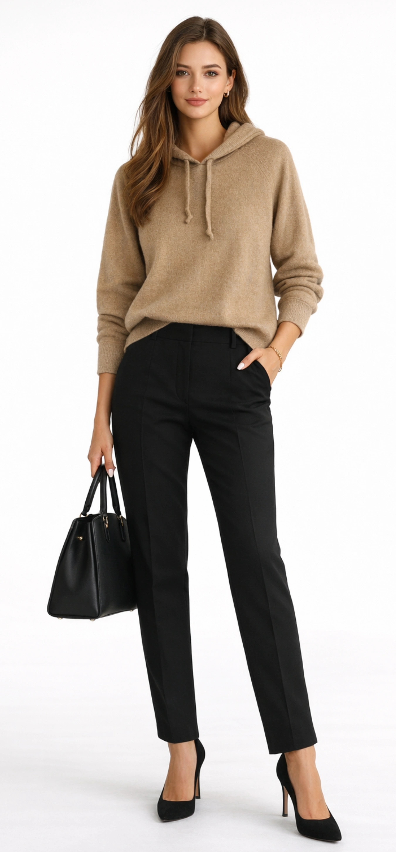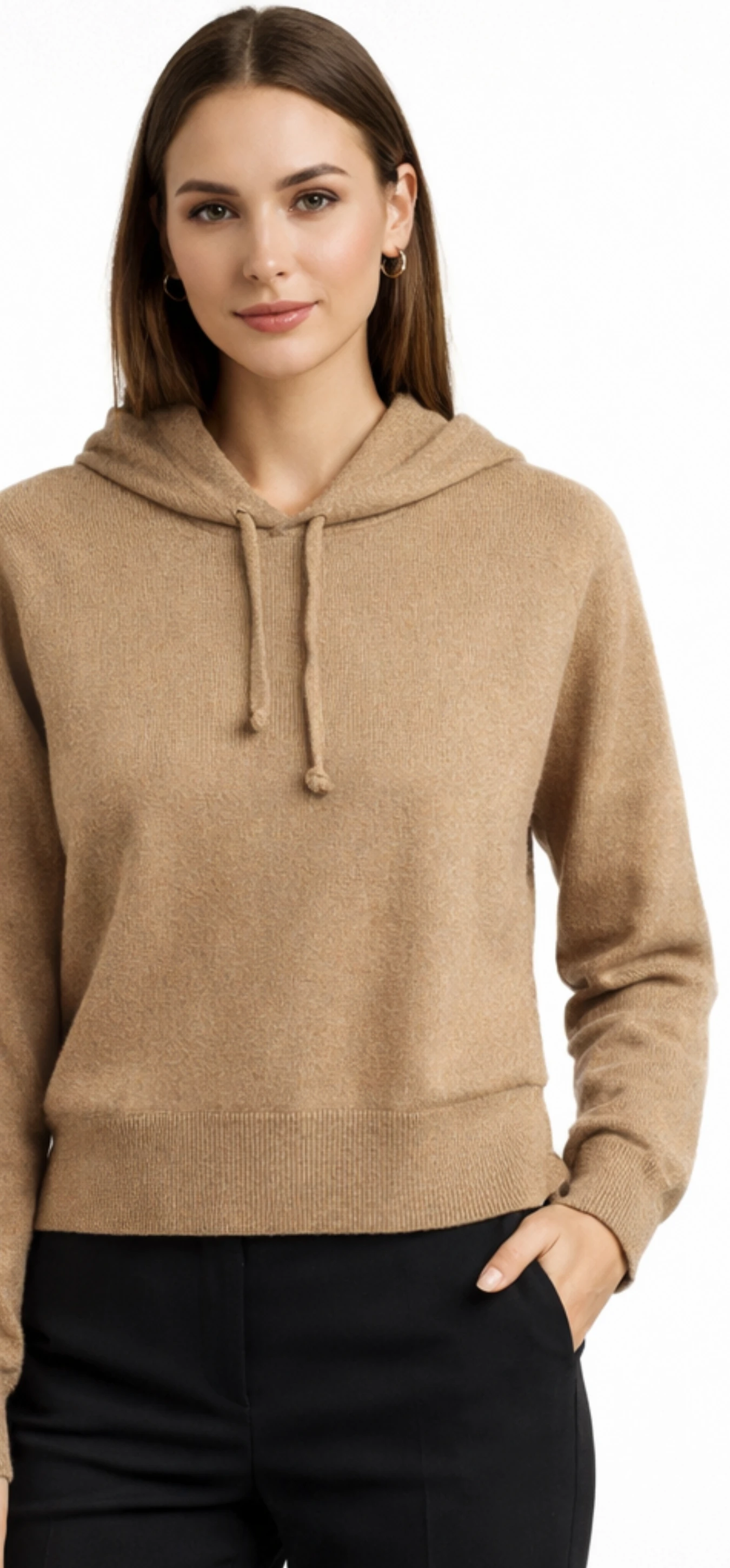Лаконичный офисный casual: кофта с капюшоном из 100% верблюжьей шерсти в натуральном оттенке